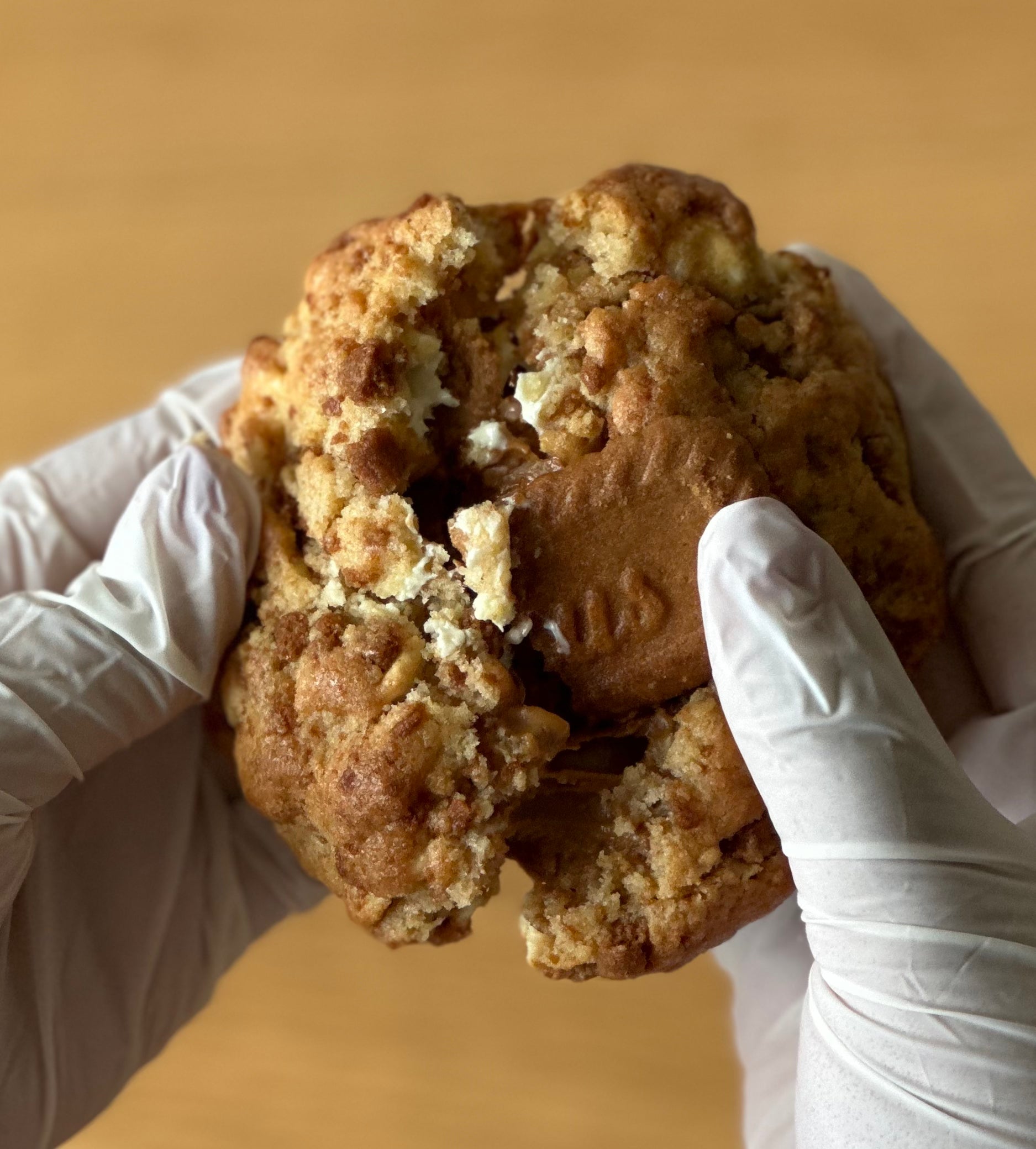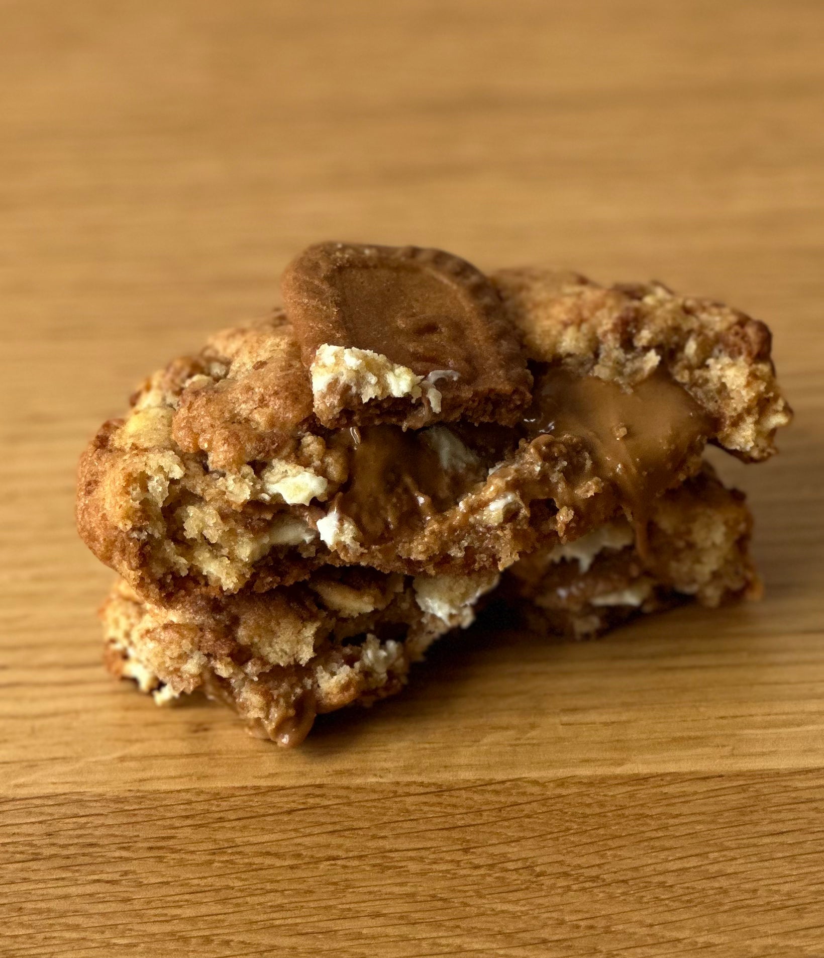 Een rijke, smeuïge cookie met Lotus kruimels door het deeg, romige witte chocolade chips en een zachte kern van verrukkelijke Lotus-pasta. Een droom voor speculoosliefhebbers.